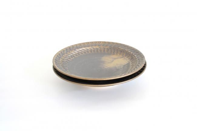 ◆市野 耕 | マンガン釉 7寸葉紋皿
