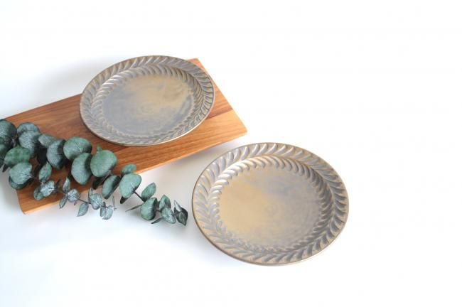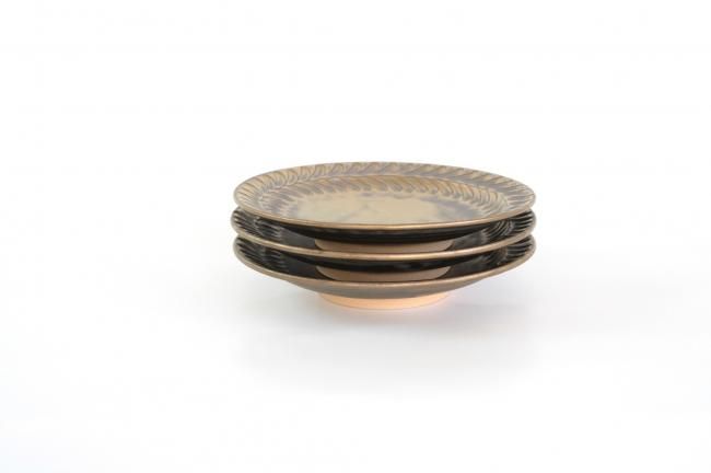 ◆市野 耕 | マンガン釉 5寸葉紋皿