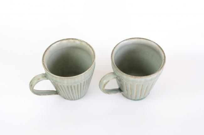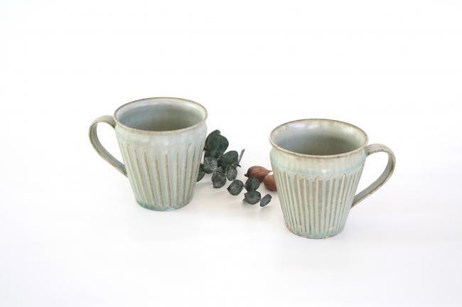 それぞれの太さで施されるしのぎ模様が美しいマグカップです。